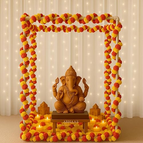39536 reviews for Abhaas Pooja Decoration DIY Mandap Tent Pandal with 5Pcs Marigold Garlands for Ganesh Chaturthi Home Decor Cubical Mandap | Ganesh Chaturthi/Durga Pooja (25Pcs) (Mix (Yellow+Orange), 20Inch Cube)