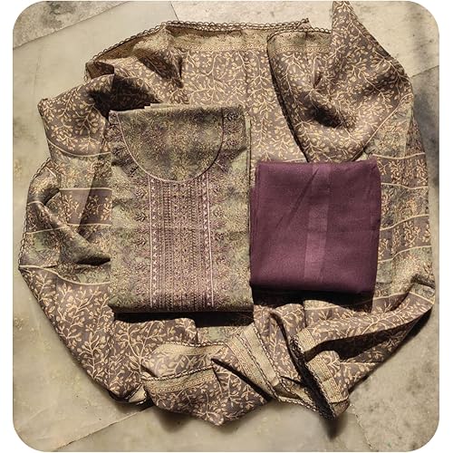 ABODH COLOURS Women’s Unstitched Woolen Salwar Suit and Stole Embroidered, Printed For Winter Wear