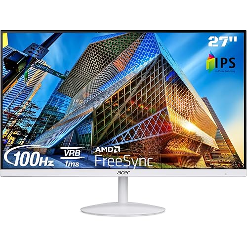 Acer SA272E 27 Inch Full HD IPS Ultra Slim (7.2mm Thick) Backlight LED LCD Monitor I Zero Frame I 100Hz Refresh I 1 MS VRB I AMD Free Sync I 1xHDMI 1xVGA I Stereo Speakers I Eye Care I White