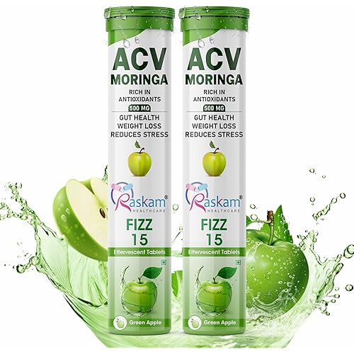 19 reviews for ACV Moringa 15 Effervescent Tablets Apple Cider Vinegar With No Added Sugar For Gut Health | Weight Loss | 500mg (Pack of 2, Green Apple)