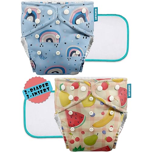 Advanso Leakage Proof cloth diapers for babies 0 to 3 years high absorbent 2 reusable diaper 2 insert pad pack washable diapers free size 5-18kg adjustable pocket cover liners 22