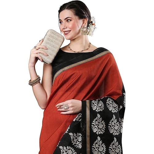 Saree Color : Rust | Blouse Colour : Black Saree Fabric : Bhagalpuri Silk | Blouse Fabric : Bhagalpuri Silk Saree Pattern : Bagh | Blouse Pattern : Solid Saree Length: Saree- 5.5 || Blouse Piece Length: 0.8 Mtr Package Contains :- 1 Saree with 1 unst… read more