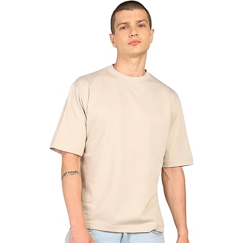 Alan Jones Clothing Men Cotton Crew Neck Half Sleeve Oversized Regular Fit T-Shirt