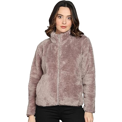 415578 reviews for Alan Jones Clothing Women’s Fluffy Yarn Fleece Full-Zip Jacket | Soft Lightweight Warm Outerwear with Stand Collar & Piping at Hem & Cuffs