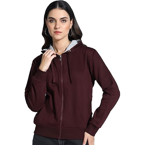 41514970 reviews for Alan Jones Clothing Women’s Solid Zipper Hooded Sweatshirt | Front Zip, Ribbed Hem, Lined Hood, Casual Winter Wear