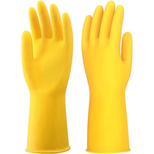 - 𝐇𝐞𝐚𝐯𝐲 𝐃𝐮𝐭𝐲 𝐏𝐫𝐨𝐭𝐞𝐜𝐭𝐢𝐨𝐧: Made from high-quality rubber, these gloves are designed to offer heavy-duty protection against chemicals, detergents, and hot water, ensuring safety during all household cleaning tasks.