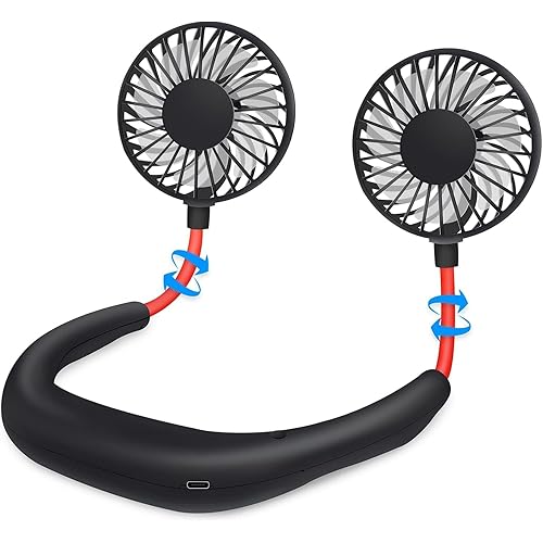 Amafillment Hand Free Neck Band Portable Wearable Mini Sport Fan 3 Adjustable Speeds 1 Piece Sports Fan USB Rechargeable Neck Plastic Electric Fan