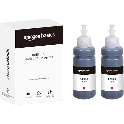 amazon basics T664 Refill Ink Bottle (Dual Pack) | Compatible with Epson L130/L360/L380/L361/L565/L210/L220/L310/L350/L355/L365/L385/L405/L455/L485 | Leak-Proof (70ml, Magenta)