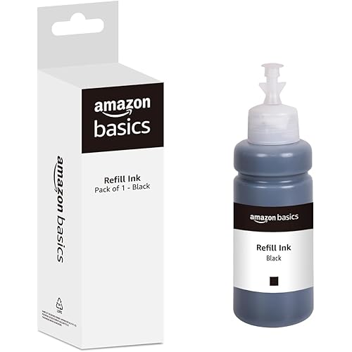 amazon basics T664 Refill Ink | Compatible with Epson L130/L360/L380/L361/L565/L210/L220/L310/L350/L355/L365/L385/L405/L455/L485 Printers | Leak-Proof (70ml, Black)