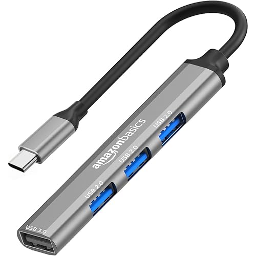 Amazon Basics USB-C Multiport Adapter with 1 USB 3.0 & 3 USB 2.0 Ports, Plug & Play, Built-in Smart Chip, Compatible with MacBook, Laptop, Tablet, Smartphone, and More