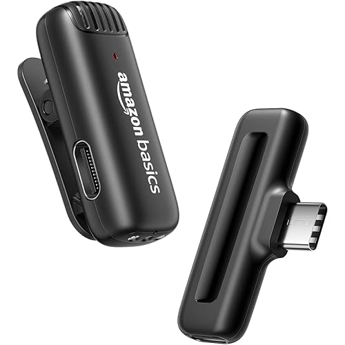 amazon basics Wireless Microphone & Receiver with Type C | USB Type-C Connectivity | Compatible with Noise Cancellation Microphones Audio Transmission