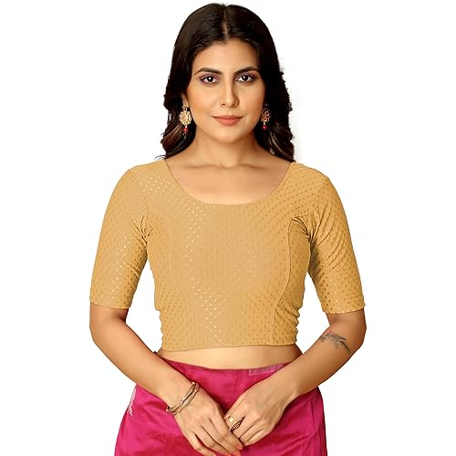 405688 reviews for Amazon Brand – Anarva Round Neck Dobby Cotton Lycra Stretchable Elbow Half Sleeve Readymade Saree Blouse for Women Stylish