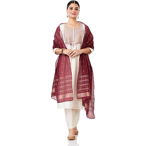 Amazon Brand – Myx Women’s Embroidered Kurta Pant Set with Contrast Dupatta
