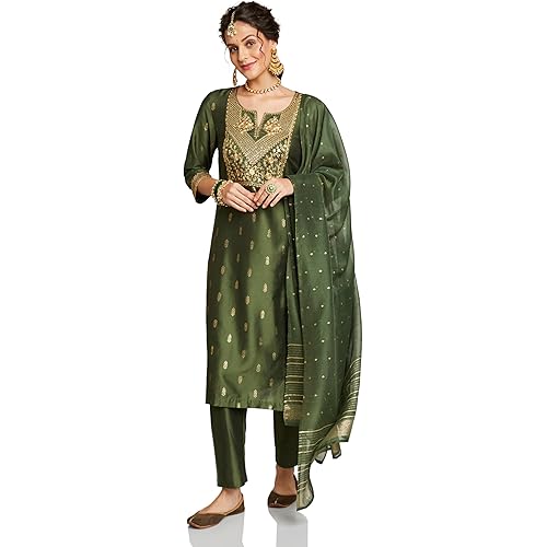 3854 reviews for Amazon Brand – Myx Women’s Embroidered Kurta Set with Designer Jacquard Dupatta | Latest Design | Available in Plus Sizes