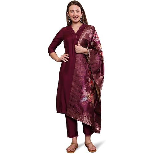 - Crafted from premium, breathable fabric, this exquisite set boasts a luxurious feel and a flattering silhouette, making it perfect for both daytime festivities and evening soirees. Elevate your look by pairing the suit with statement jewelry and traditional embellished juttis or mojris, adding a touch of glamour and sophistication to complete the ensemble.