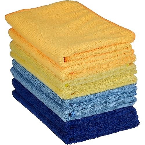 Amazon Brand – Presto! 88% Polyester / 12% Polyamide Microfiber Cloth in Multi Color GSM -340 (8pcs Set) Orange, Light Blue, Yellow, Blue (2 Each)