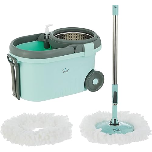 4056451 reviews for Amazon Brand – Presto! Clean Steel Spin Mop | Plastic & Stainless Steel | 2 Microfiber Refills | Big Wheels with Drag Handle | 360° Spin | Telescopic Handle | Green