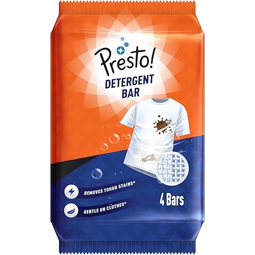 Amazon Brand – Presto! Detergent Bar | 250g | 4 Count | 4 Bars Each X Pack of 1 | Tough On Stains | Gentle On Fabrics | Colour-Safe | Refreshing Fragrance | Gentle on Hands