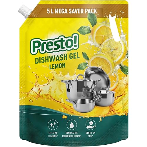 42537 reviews for Amazon Brand – Presto! Dishwash Gel | Lemon | 5 L Refill Value Pack | Dishwash Liquid | Cuts Through Grease | Safe On Hands