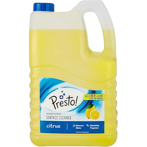 Amazon Brand – Presto! Disinfectant Surface & Floor Cleaner | Citrus | 5 Litre | Kills 99.9% Germs | Suitable For Floor & Bathroom Surfaces Like Ceramic, Marble, Granite, Mosaic