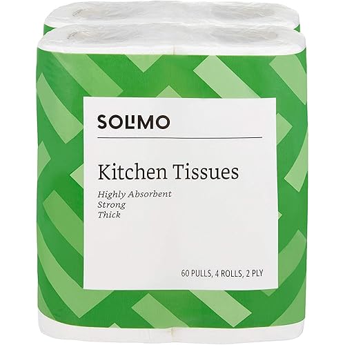 44530904 reviews for Amazon Brand – Solimo 2 Ply Kitchen Tissue/Towel Paper Roll 240 pulls | 60 pulls X 4 Rolls | soft and highly absorbent | 100% Natural Virgin Cellulose Fiber