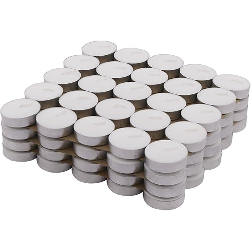 Amazon Brand – Solimo Wax Tealight Candles, 3-Hour Burn Time, Smokeless, No Residue (Set of 100, Unscented)