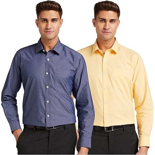 Amazon Brand – Symbol Men’s Cotton Formal Shirt | Casual | Plain | Full Sleeve | Combo Pack of 2-Regular Fit (Available in Plus Size)