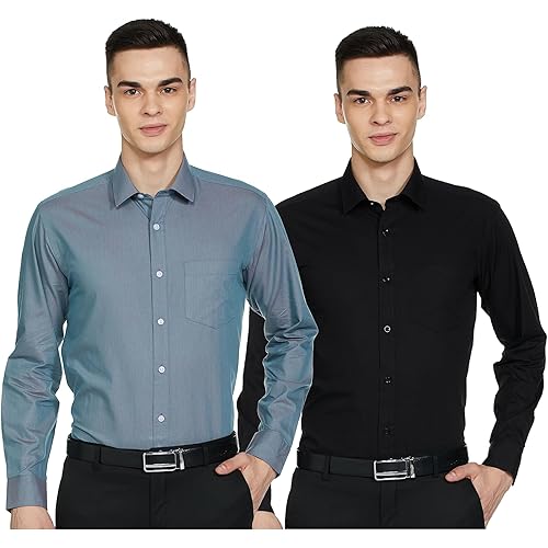 Amazon Brand – Symbol Men’s Cotton Formal Shirt | Casual | Plain | Full Sleeve | Combo Pack of 2 – Regular Fit (Available in Plus Sizes)