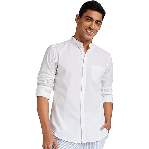 3957088 reviews for Amazon Brand – Symbol Men’s Cotton Shirt | Chinese Collar | Casual | Plain | Full Sleeve | Summer – Regular Fit (Available in Plus Size)