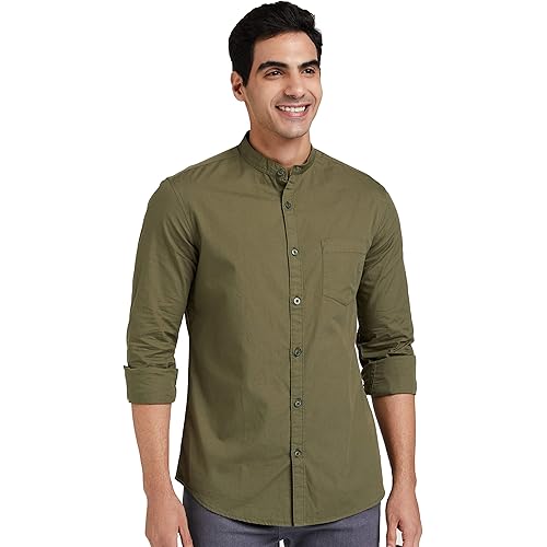 Amazon Brand – Symbol Men’s Solid Cotton Shirt | Chinese Collar | Casual | Plain | Full Sleeve | Summer-Regular Fit (Available in Plus Size)