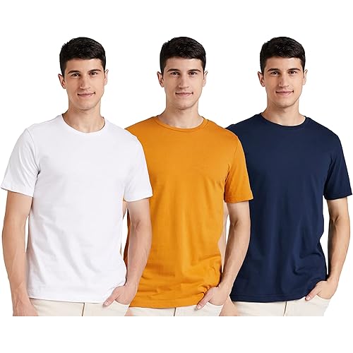Amazon Brand – Symbol Men’s Solid Cotton T Shirt | Plain | Round Neck | Half Sleeve – Regular Fit | Combo Pack of 3 (Available in Plus Size)