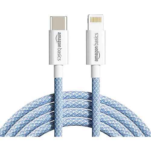AmazonBasics New Release Nylon Braided USB-C to Lightning Cable Cord, MFi Certified Charger for Apple iPhone 14, 13, 12,11, X, 8, 7, 6, 5, iPad Air, Pro, Mini, iPad,Sierra Blue, 1 meter