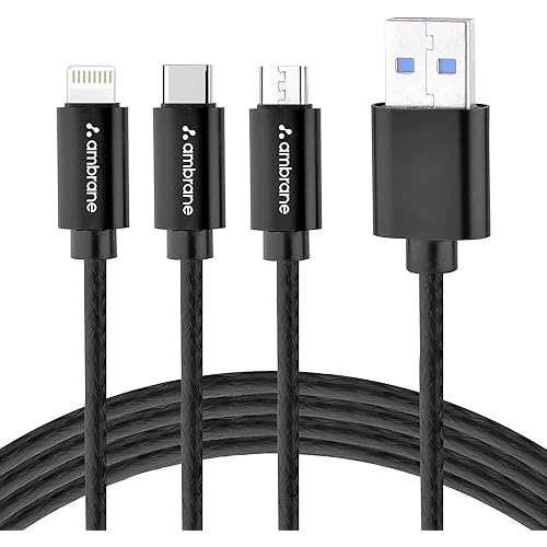 4057675 reviews for Ambrane Unbreakable 3 in 1 USB Fast Charging USB Cable with Type C, Lightning, Micro USB Port with 2.1 A, Compatible with iPhone, iPad, Samsung, OnePlus, Mi, Oppo, Vivo, Xiaomi, 1.25M (Trio-11, Black)