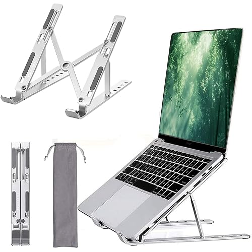 Amkette Ergo Fold X Laptop Stand Metal, 6-Level Adjustable Angles, Supports up to 15.6 inches Laptops, Premium Aluminium Build, Lightweight & Portable, Anti-Slip Silicone Pads, Smart Heat Dissipation