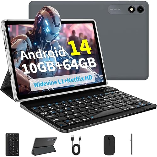 3955 reviews for Android 14 Tablet 10 Inch Tablet 5G WiFi Octa-Core 10GB RAM + 64GB ROM (TF 2TB), FHD, Dual Camera, 6000mAh, Bluetooth 5.0, Widevine L1, Tablet with Keyboard and Mouse (aerolite ash+gaming
