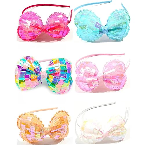MATERIAL: Made of high-quality Glitter ribbons bow headband, Hand-made multi-Colored bow headbands for girls. Design Style: These headbands are in different style, There are many different colors of sequins on the bow, which make the headband look mo… read more