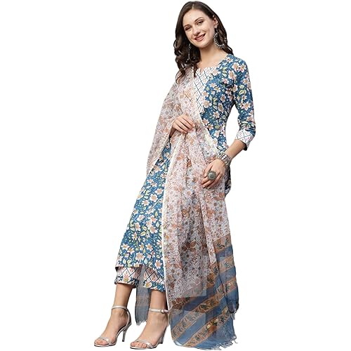ANNI DESIGNER Women’s Cotton Blend Straight Printed Kurta with Pant & Dupatta