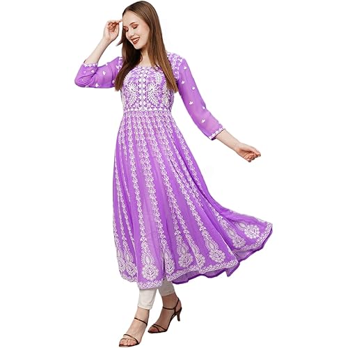Kurta Fabric: Georgette || Kurta Color :- Purple Style: Anarakali || Length: Calf Length || Sleeves: 3/4 This set includes: 1 Kurta || Work : Chikankari Embroidered || Neck Style:- Round Neck Ocassion: Traditional wear, Casual Wear, party wear, eveni… read more