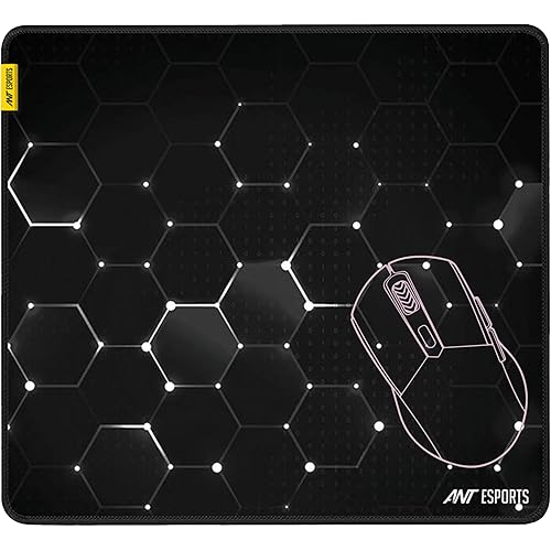 Ant Esports Hexa Mouse Pad 260X210X3mm Anti-fray Stitching, Waterproof Surface & Non-Slip Rubber Base Stitched Edges Gaming Mouse Mat for Laptop, Compatible with Laser and Optical Mice – Black Hexagon