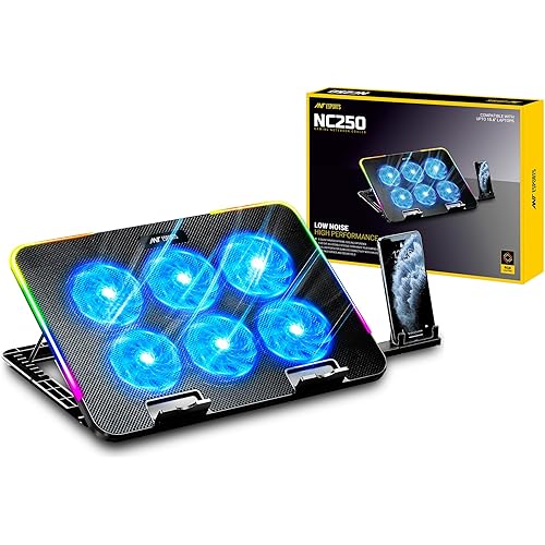 Ant Esports NC250 RGB Laptop Cooling Pad, Laptop Cooler with Mobile Holder 6 Quite Fans at 3000 RPM Fan Speed Controller 7 Height Adjustable Angle 2USB Ports Compatible for Laptop up to 15.6”
