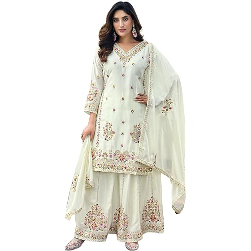 4154 reviews for Anveri Textiles Premium Silk Embroidered Kurti with Sharara & Dupatta | Elegant Ethnic Wear for Women | Festive & Party Outfit