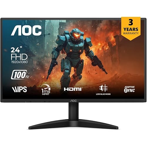 AOC 24B36H 23.8-Inch IPS Full HD Monitor, 100Hz Refresh Rate, 1ms Response Time, 3-Sided Frameless Design, Adaptive Sync, SRGB 105%, Mega DCR, HDMI Port, Flicker-Free Technology for Smooth Viewing
