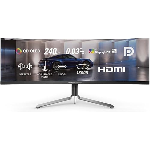 AOC PD49 Porsche Design 49″ 5K DQHD QD-OLED Gaming Monitor, 240Hz Refresh Rate, HDR TrueBlack 400, 1800R Curve, 1000 Nits Brightness, USB-C, KVM, Speakers, Ergonomic Stand, Premium Build