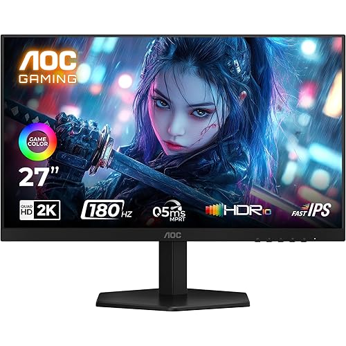 AOC Q27G11E 27″ QHD Gaming Monitor – Black/Red | 2560×1440 Fast IPS| 180Hz Refresh | 0.5ms MPRT|Adaptive Sync| HDR10| Tilt Stand & Low Blue Light