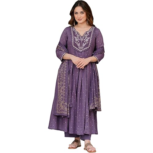 415107 reviews for Arayna Women’s 100% Pure Cotton Anarkali Kurta Set with Pant & Dupatta | Embroidered Flared Kurta | Elegant Ethnic Suit