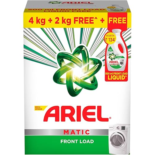 Ariel Matic Front Load + Matic Liquid Free Detergent Washing Powder for 100 tough stain removal – 6kg + 500ml Liquid Free