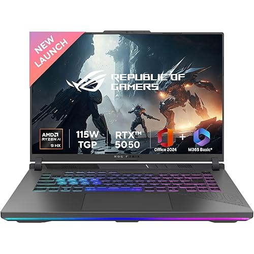 5056 reviews for ASUS ROG Strix G16, AMD Ryzen 9 8940HX, Gaming Laptop(RTX 5050-8GB/115W TGP/16GB RAM/1TB SSD/FHD+/16″/165Hz/90Whr/Windows 11/M365 Basic (1Year)*/Office Home 2024/Eclipse Gray/2.5 Kg) G614PH-RV033WS