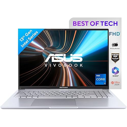 ASUS Vivobook 16, 16″ FHD+ (1920 x 1200),Intel Core i7-13620H Processor,(16GB RAM/512GB SSD/Intel Iris Xᵉ iGPU/Windows 11/M365 Basic (1Year)*/Office Home 2024/Silver/1.88 kg),X1605VA-MB1628WS