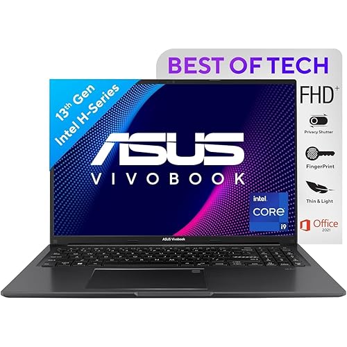 ASUS Vivobook 16 (2023)Thin & Light Laptop,Intel Core i9-13900H 13th Gen, 16″ (40.64 cm) FHD+(16GB RAM/512GB SSD/Intel Iris Xe/Win 11/Office 2021/Backlit KB/Fingerprint/Black/1.88 kg) X1605VA-MB947WS