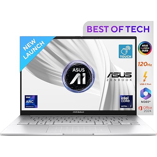 ASUS Zenbook 14, 14″ 3K (2880 x 1800) OLED, Touch Screen,Intel Core Ultra 7,(32GB RAM/1 TB/Intel Arc iGPU/Windows 11/MS Office 365 Basic(1Year)*/Office Home 2024/Foggy Silver/1.28 Kg),UX3405CA-PZ348WS